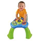 Dancing lights, playful music and ocean sounds-plus lots of busy activities for baby to explore all around the sturdy table. Roll the ball to start music and dancing lights and see the fishy flip! Turn the book pages or slide the shell for sea sounds. Spin the starfish, bat the spinning beads, slide the crab, and have oceans of fun! Includes 3 AA batteries.