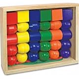 Thirty wooden beads in six vibrant colors and five distinct shapes combine with two extra-long laces for many activities. Stringing the easily grasped beads promotes hand-eye coordination, fine motor, cognitive and visual perception skills.