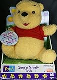 This soft, cuddly representation of A.A Milne's classic bear measures about 14"Christopher Robin always told Winnie-the-Pooh that he was a silly old bear, and so is this 8-inch stuffed version of the inimitable Pooh. Looking just like he stepped out of any one of the books by A.A. Milne or a Walt Disney video, Pooh is dressed in his trademark little red shirt and is posed in his favorite position--sitting down resting (and ready to eat honey, no doubt). But this Pooh bear has a trick: squeeze him and he sings an entire song; squeeze him again and he'll give a giggle while singing. It's the magic of Pooh, in a cozy, giggling little package. --Lynne Sampson